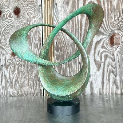 Ощутите вневременную красоту состаренного искусства. Эта изысканная небольшая скульптура изготовлена из цельной меди и покрыта потрясающей, естественной патиной. Этот отличительный сине-зеленый оттенок, напоминающий древние статуи и выветрившиеся архитектурные детали, является не просто покрытием, а празднованием благородного процесса старения металла.