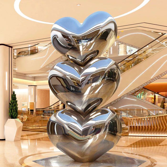 Скульптура из нержавеющей стали «Сердце в зеркальной отделке» — потрясающее произведение искусства, предназначенное для украшения отелей. Изготовленная из нержавеющей стали с зеркальной полировкой, эта скульптура представляет собой сложенные формы сердец, символизирующие любовь и элегантность. Эта скульптура идеально подходит для добавления нотки изысканности и очарования в гостиничные помещения. Зеркальная отделка создает отражающую поверхность, которая улучшает атмосферу в вестибюлях, лаунджах и других общественных зонах отелей, делая ее центром притяжения для гостей и посетителей.