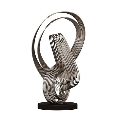 Это можно описать как гладкую, современную скульптуру, предназначенную для внутренних помещений, изготовленную из полированной нержавеющей стали.абстрактные формы, которые вызывают движениеМатериал из нержавеющей стали придает ему зеркальную окраску, отражающую свет и окружающую среду.который создает интерактивный опыт, когда зрители двигаются вокруг негоОн идеально подходит для современных домов, галерей или корпоративных лобби, добавляя элементы промышленной элегантности, не перегружая пространство.