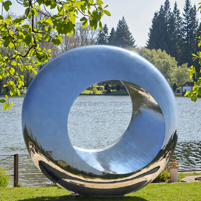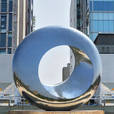 Эта гигантская зеркально-полированная скульптура кольца из нержавеющей стали является ярким центром городского общественного пространства.его отражающая поверхность захватывает и переосмысливает окружающее городское пространство - поворачивающийся прохожийКак отличительная городская художественная инсталляция, она объединяет функциональный общественный декор с современным искусством.предлагая захватывающий интерактивный опыт, одновременно повышая современную атмосферу любой городской среды.