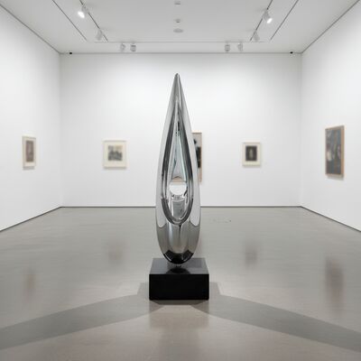 • Scale: At 200cm (6.5 ft) tall, it is designed to be at eye level, allowing viewers to see themselves in the steel while also observing the broader environment reflected above.