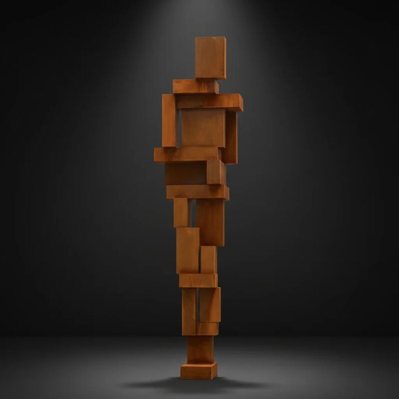 Transform your outdoor space with our striking corten steel geometric human sculpture, a bold fusion of modern cubist art and durable weathering steel design. Crafted from premium corten (weathering) steel, this abstract metal figure statue is assembled from interlocking rectangular blocks, creating a dynamic, minimalist human form that makes a powerful statement in any landscape.